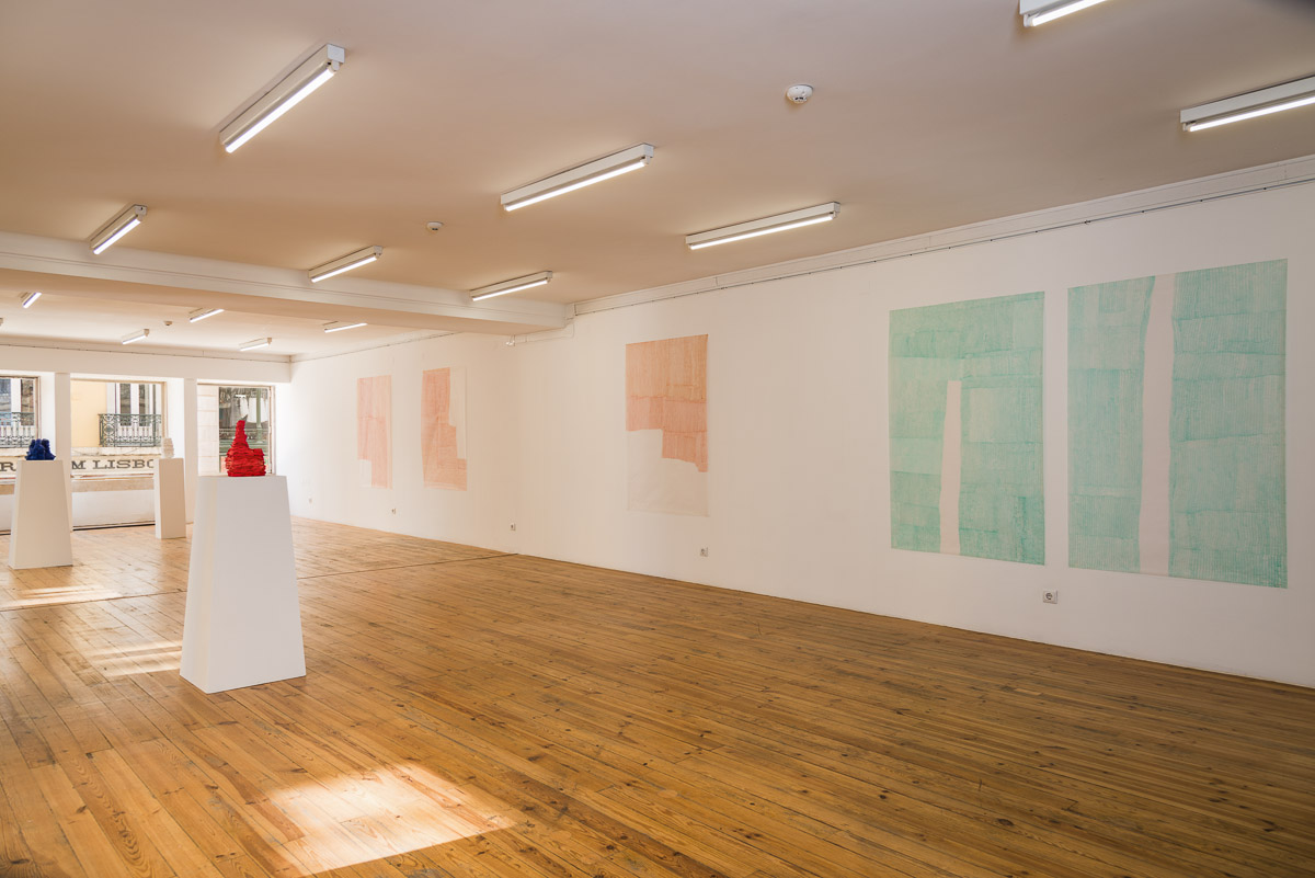 Os desenhos e as esculturas presentes na exposição são o resultado de gestos performativos repetidos até à exaustão do corpo; é nesse ponto que o gesto encontra um ambiente de abandono produtivo – a repetição, ela própria, que se torna método e estilo.